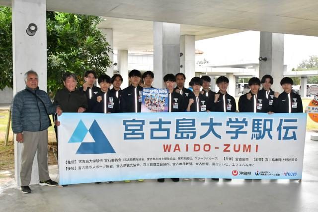 「宮古島大学駅伝ワイドー・ズミ2025」(9日、市陸上競技場発着)に出場する東海大の選手ら15人が3日、下地島空港に到着した。関係者の出迎えを受け、両角速監督は「これまでで一番参加数が多い。強豪の胸を借りるつもりでしっかりとチャレンジし、良い結果を持ち帰りたい。駅伝と合宿がセット。新シーズンに向けて気候の良い宮古島でしっかり練習して力を蓄えたい」と意欲を示した。