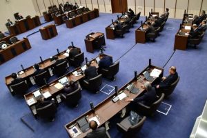 市議会(平良敏夫議長)の臨時会が14日、市議会議場で開会し、2024年度一般会計補正予算案の1件の議案が提案され審議の結果、可決した。伊良部児童館建設事業で5億8092万円を繰り越す。本来であれば次年度の予算を確定した後に業者と契約しなければならないが、市は予算確定前に仮契約を締結しており、嘉数登市長は「今回、このような形で臨時議会を開催することを大変申し訳なく思っている」と謝罪し、今後の対策などを説明した。