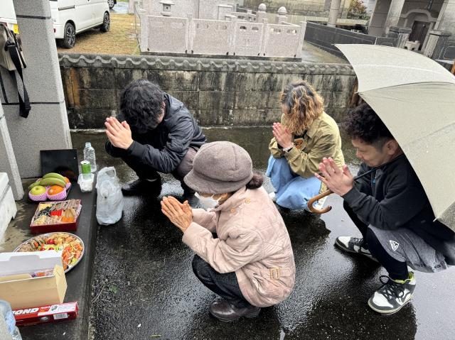 旧暦1月16日に当たる13日は、後世(グソー、あの世)の正月と呼ばれる「旧十六日祭(ジュウルクニツ)」。朝から冷たい雨だったが多くの家族が、それぞれの墓地に出向き、料理や泡盛を供えて先祖を供養しながら日ごろの見守りに感謝し、向こう一年の健康などを祈願した。