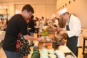 宮古島来間リゾートシーウッドホテルは8日、開業5周年を記念したディナーイベントを同ホテル内の「ビーチハウスレストラン洋食の店KISSHO」で開催した。春の食材や宮古島のほろよい牛のローストビーフ、近海で取れた魚介の鉄板焼き、アグー豚のしゃぶしゃぶなど豪華料理をビュッフェスタイルで並べ、訪れた人たちの食欲を刺激するとともにぜいたくな時間を提供した。
