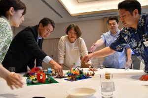 レゴシリアスプレイメソッドと教材を活用したワークショップが13日、市内のホテルで開催された。市内の民間企業から9人が参加。レゴを使った作品作りを通して、グループ内のイメージの可視化および共有することを体験した。