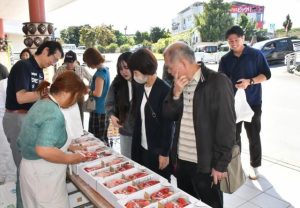 「いちごフェア」好評/市貝町、山鹿市合同物産展