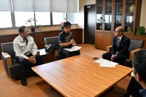 下地学区の教育関係者で結成された「下地良くし隊」(隊長・﨑山用彰下地中学校長)は25日、市役所で嘉数登市長に同学区通学路の交通安全対策を要望した。教育施設前の道路や横断歩道をカラー舗装することなどを求めている。市は新年度予算で対応する予定。