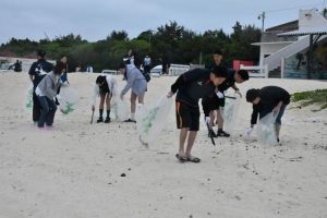 宮古島観光協会青年部(西村貴宏部長)は29日、与那覇前浜ビーチで4月6日に開催する「宮古島の海びらき」の参加者に安全、快適に楽しんでもらおうと同ビーチのクリーンアップ活動を行った。青年部員や会員企業から約100人が参加し、マイパマエスカーサ(旧ウィンディーまいばま)前駐車場を起点に分別しながら燃えるごみなどを拾い集めた。