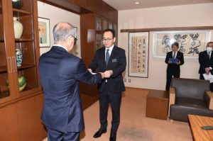 嘉数登市長は1日、市議会3月定例会で副市長への同意案が同意された砂川朗氏(55)に辞令を交付した。嘉数市長は「公約実現に向けて力を貸してほしい」と話し、砂川氏の手腕に期待した。辞令を受けた砂川氏はこの後開かれた定期人事異動辞令交付式や庁議に出席し、業務をスタートさせた。