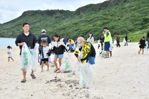 「海辺のミライをみんなで守ろう第4回ほっとけないプロジェクト」(主催・同プロジェクト実行委員会)が5日、新城海岸で行われた。宮古ライオンズクラブや極真会館宮古道場、宝塚医療大学宮古島キャンパス、チアダンスチ-ムSPEIRAなど協力21団体と家族連れなど約350人がビーチクリーンに参加し、ペットボトルや漁具などを拾い集めて海洋ごみ問題への認識を深めた。