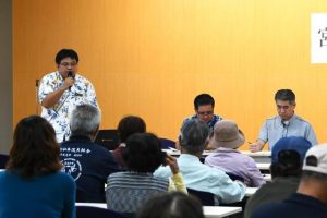 市畜産課事業説明会が8日、市役所で開かれた。畜産農家93人が参加し、市の担当者から緊急優良母牛更新補助事業や家畜伝染性疾病の発生予防補助金、畜産経営対策および地産地消推進事業などについて解説した。嘉数登市長(代読)は「畜産を取り巻く環境は長引く生産資材の高騰など社会情勢の影響で厳しい状況にある。市においては子牛の競り価格が2月、3月と上昇傾向にある。今年度は伝染性疾病や異常産予防対策のワクチン補助を拡充、市20周年事業として宮古牛の地産地消を推進していきたい」とあいさつした。