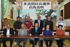 【多良間】多良間村長の伊良皆光夫氏(69)は12日、村塩川にある塩川集落センターで記者会見し、任期満了に伴う村長選(6月17日告示、同22日投開票)に4期目に向け出馬することを正式に表明した。伊良皆氏は暮らしを豊かにする産業の振興など七つの基本政策を示し、「職員と協力し村民と共に人口減少など課題を解決し、心豊かに住み続けられる『ゆかり村』を築いていく」と強調した。