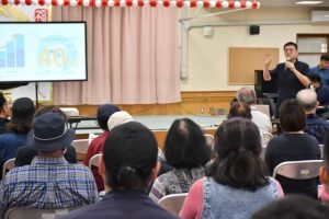 「宮古島80歳でも認知症『0』作戦!」(主催・医道メディカル)が16日、市内の障がい者総合支援施設で行われた。医学博士の陰山泰成氏が講話し、参加した福祉施設関係者や市民らが認知症の予防について認識を深めた。陰山氏は認知症予防のカギは▽リスクを知る▽口腔内コントロール▽定期検査で早期発見-の三つだと説明し、認知症に関する遺伝子検査や認知機能AI検査を受けるよう呼び掛けた。