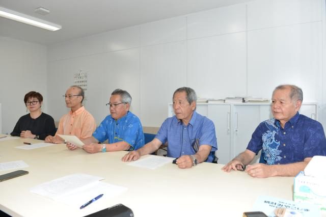 市議会野党議員7人が連名で、第39回全日本トライアスロン宮古島大会で支援に当たる陸上自衛隊員が迷彩服を着用しないよう求める「宮古島の純粋なイベントを組織的に利用するのは許されない」との声明を16日に発表した。國仲昌二氏ら5人が市役所で会見し「大会に寄せる気持ちが汚されたようで憤りを覚える。支給されたTシャツを着用してほしい」と語気を強めた。
