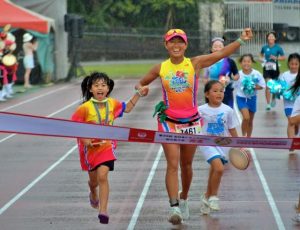 「完走できて良かった。無事にゴールできてほっとしている。ランの後半、雨が降ったので暑さが抑えられて良かった」と充実感あふれる表情を見せたのは、出場2回目の高橋美保子さん(40、市平良)。ゴール後は「しばらく休んで、来年の出場に向けて練習を再開したい」と来年を見据えた後、「焼き肉を食べたい」と笑った。
