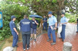宮古島海上保安部(丹野博信部長)は26日、ゴールデンウイークにおけるマリンレジャー安全対策の一環で合同海浜パトロールを市内各地のビーチで行った。同部の職員や宮古島署の署員、海上安全指導員が参加し、観光客らにチラシを配布して海での事故防止を呼び掛けた。