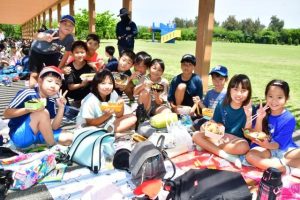 市内の複数の小学校は2日、遠足を行った。青空が広がる各地の公園では、母親らの愛情たっぷりの手作り弁当を食べ「すごくおいしい」と笑顔を見せた。