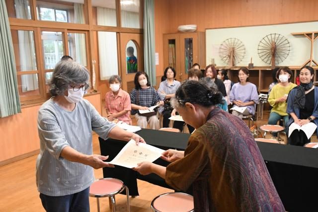宮古苧麻績み保存会(友利明美会長)の2025年度苧麻糸手績み伝承者養成初級講習の開講式が10日、市歴史文化資料館で行われた。友利会長から講師12人に任命状が交付されたほか、事務局から同事業について説明が行われた。