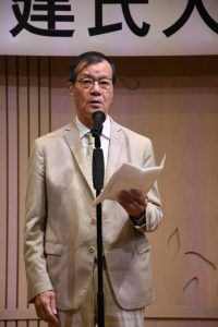 宮古出身で那覇市在住の俳人・大城健さん(70)の第59回沖縄タイムス芸術選賞文学(俳句)大賞受賞祝賀会(主催・世話人会)が10日、市内のホテルで行われた。宮古高校の同級生(第25期)や文芸関係者、親族など約60人が参加し、受賞を喜ぶと共に大城さんのさらなる活躍を祈念した。