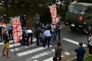 航空自衛隊宮古島分屯基地に配置されたPAC3の交換部品(弾薬類)とみられる車両を積んだ航空自衛隊のC2輸送機が19日、宮古空港に着陸した。これに合わせてミサイル基地いらない宮古島住民連絡会のメンバーらが宮古空港で抗議活動を行い、「ミサイルを持ち込むな」などとシュプレヒコールを上げた。