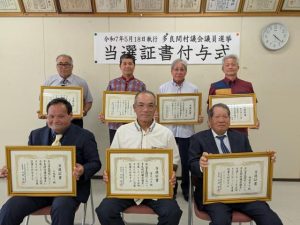 当選者7人に証書を付与/多良間村選管