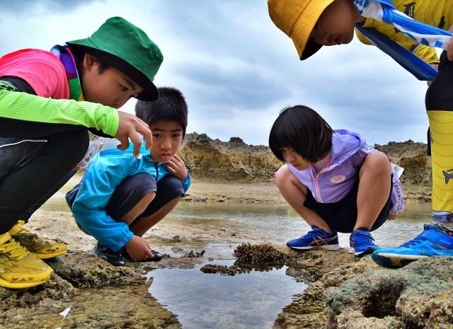 「宮古島サンゴ礁ガイドのなかまたち」(友利博一会長)の「海辺の観察会」が25日、上野の海岸で行われ会員3人と親子連れなど一般参加の15人が参加し、海辺で命を育む生物たちやサンゴ礁が果たす役割などについて学んだ。