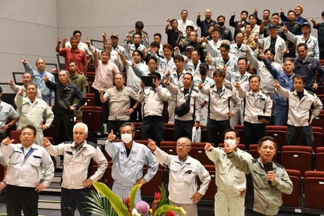 宮古地区安全大会(主催・県労働基準協会宮古支部ほか)が4日、市未来創造センターで開かれた。事業主や労働者らが多数参加し、指差呼称で全国安全週間のスローガンを確認した。「災害ゼロを目指した安全活動に取り組み、さまざまな意見を求め、より良いものを取り入れていく。『安全第一』を新たな時代へ継承していく」との大会宣言を採択した。