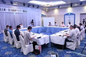 沖縄振興開発金融公庫(新垣尚之理事長)は5日、地域の経済動向や各業界のニーズを探ろうと「沖縄公庫・宮古経済ワイドー懇談会」を市内のホテルで開いた。開催は2年ぶり。市内の8企業・団体が参加し、沖縄公庫の各種制度に認識を深めるとともに、深刻化する人手不足や住居問題への認識を共有した。