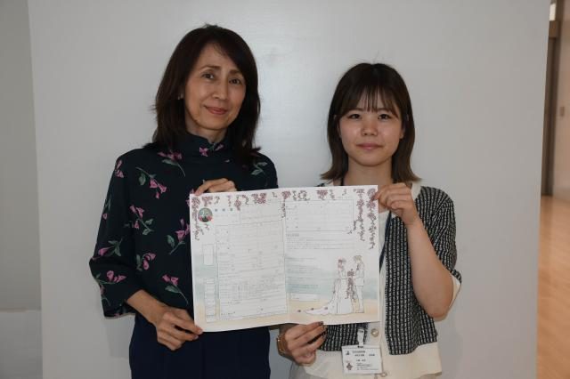 宮古島市は、市制20周年記念オリジナル婚姻届を作成し、4日から市公式ホームページ(HP)に掲載している。用紙の上部を市花のブーゲンビリアで飾り、背景に宮古島の海を入れた華やかなデザイン。窓口では配布せず、HPから直接ダウンロードし、A3サイズでプリントして使用する方式。担当する市民課では5日、「2人の記念すべき、すてきな門出を飾っていただければ幸い」と利用を呼び掛けた。