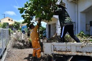 伊良部商工会「商工会の日」で清掃/再開予定の診療所敷地も