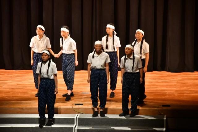 戦時中に宮古島で起きた悲劇を後世に伝え、世界の恒久平和を願う戦争劇「知られざる沖縄戦~宮古島の戦争の話~」が23日、マティダ市民劇場で初披露された。戦争によって明るい未来が奪われた島民らが、励まし合いながら生き抜く姿を演じ、「この悲惨な戦争を決して忘れてはいけない」と訴えた。会場には多くの市民が集まり、万雷の拍手で熱演をたたえた。