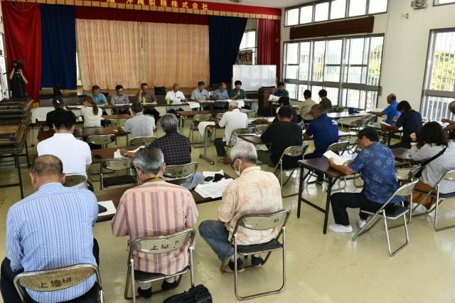 下地の竹アラ地区ほ場整備事業の計画変更について市は24日、上地構造改善センターで受益農家を対象にした説明会を開催した。参加した農家は、工期の完了時期や一部農家に計画変更の同意書が発送されたことについて説明を求めたが、市は明確な回答を示さなかった。農家からは怒りの声が上がり、再度の説明会開催を求めた。同計画変更については26日の市議会経済工務委員会で採決される。