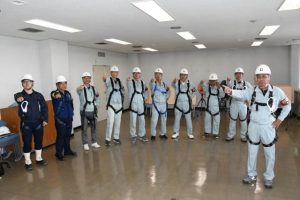 第98回全国安全週間(主唱・厚生労働省ほか、1~7日)にちなんだ建設業官民合同パトロールが4日、市内各地の建設工事現場で実施された。パトロール出発式が平良地方合同庁舎で行われ、参加した宮古労働基準監督署の職員や建設業労働災害防止協会宮古分会の会員らがスローガンを指差し呼称で読み上げ、労働災害ゼロの実現へ向けて意識を高めた。