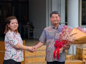 【多良間】任期満了に伴い、6月22日に行われた多良間村長選挙で、4期目の当選を果たした伊良皆光夫村長の就任セレモニーが8日、村役場で行われた。伊良皆村長が登庁すると職員が笑顔で出迎え、花束を贈った。第32代の村長に就任した伊良皆村長は改めて「重要な時代の多良間村のリーダーとしてその使命と責任を果たすべく、村政の限りない発展と村民福祉のさらなる向上を力強く推進する」と語った。