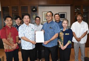 市伊良部商工会(奥濱剛会長)は8日、市役所で砂川朗副市長に地元産品の奨励および地元企業優先使用を要請した。これを受け、砂川副市長は「要請内容は市長に伝える。しっかりと地元企業の活性化のために取り組んでいきたい」と語った。