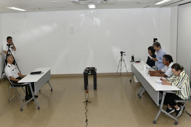 伊良部島で6日に行われた陸上自衛隊宮古島駐屯地新人隊員らの歩行防災訓練時に、同駐屯地の比嘉隼人司令がミサイル基地いらない住民連絡会のメンバーをどう喝したとされる問題で19日、比嘉司令と同連絡会のメンバーが面談した。同駐屯地内で行われた面談で比嘉司令は「威圧的は本意ではない」と謝罪するも、同連絡会が求めた発言の撤回や質問に対しては「上部組織が事実確認中」との回答を繰り返し、撤回しなかった。