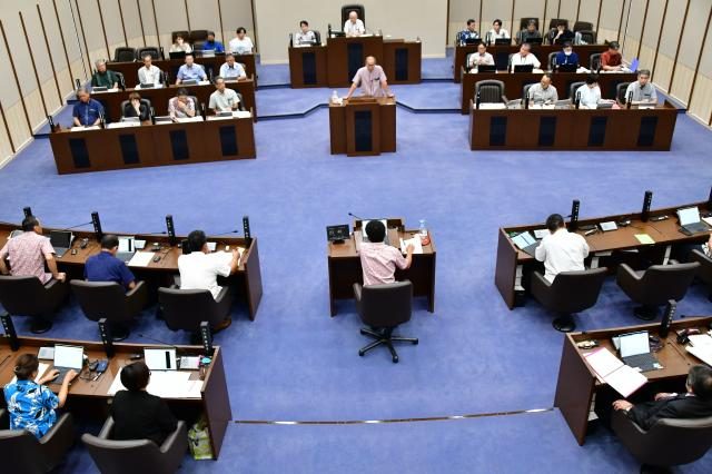宮古家畜市場での肉用牛競りの上場頭数が2020年度の4155頭から5年間で約400頭減少していることが分かった。今年度も上場頭数が減少する見通しだ。24日に行われた開会中の市議会(平良敏夫議長)9月定例会一般質問で、狩俣勝成氏の質問に下地貴之農林水産部長が答えた。狩俣氏は「月の上場頭数が300頭を切ったら魅力のない市場と思われて購買者が来なくなる」と畜産農家が不安を抱えていると指摘し、市の考えをただした。