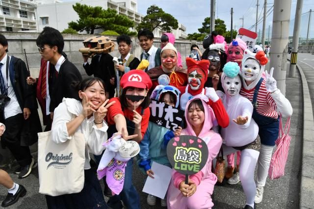 宮古高校(松原芳和校長)は25日、仮装パレードを市内大通りで実施し、学園祭の開催を市民らにアピールした。好きなキャラクターに扮(ふん)した159人の生徒たちが、クラスの催し物を記した看板を手に行進した。学園祭は26、27の両日、同校で開催される。26日は校内対象、一般公開は27日となっている。