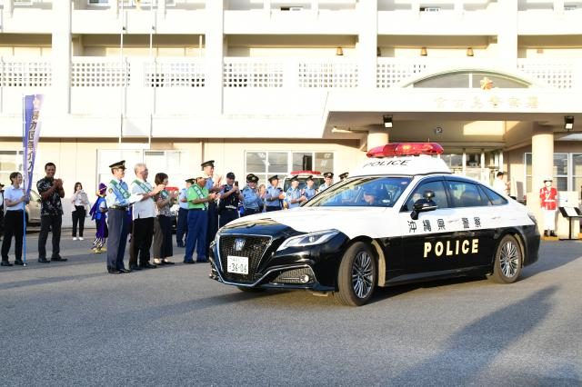 安全安心な地域づくりへ街頭パトロールに出発=8日、宮古島署