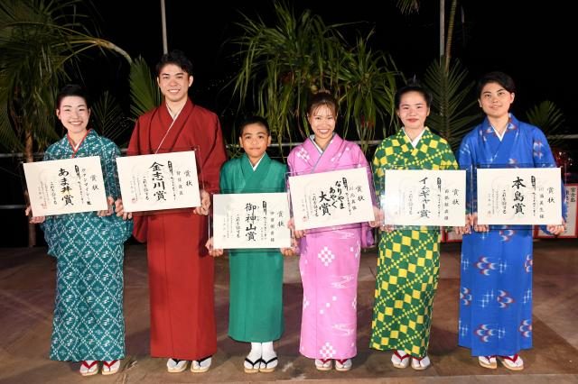 なりやまあやぐまつりの入賞者の皆さん=12日、イムギャーマリンガーデン