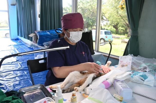 猫を保護し世話などをするボランティア団体「ねこハピ」(大出恵理子代表理事)は12日、城辺上区の地域住民らと協力し、猫の一斉TNRを実施した。捕獲した猫は上区公民館に集められ、きょう13日も引き続き実施する。TNRの実績豊富な獣医師が2日間で約70匹の不妊手術を行う。