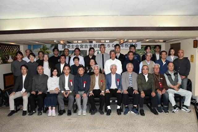 県建築士会宮古支部(下地秀政支部長)は5日、創立50周年記念式典・祝賀会を市内のレストランで開いた。会員や設計関係の事業者ら34人が集い、50周年の節目を盛大に祝うとともに支部発展への思いを語り合った。歴代支部長への功労者表彰も行った。