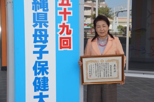 【那覇支局】県、県小児保健協会は15日、糸満市のくくる糸満で第59回県母子保健大会を開いた。地域の母子保健の向上に貢献したとして、宮古島市の母子保健推進員・渡真利佾子(いつこ)さんを大会長表彰した。渡真利さんは「すごい賞をもらえて、とてもうれしい。微力ながらも母子保健の向上に手助けができて良かった。今後も健康である限り、少しでも母子保健の向上に貢献できるよう頑張っていきたい」と喜びを語った。