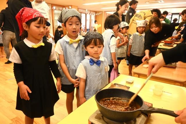 はなぞのこどもえんは26日、園児と保護者を対象に黒糖作り体験を実施した。サトウキビを搾り、素材そのものの味をジュースとして味わったり、糖蜜を煮詰めて、手作り黒糖を作ったりして楽しんだ。