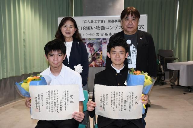 市文化協会(饒平名和枝会長)は29日、宮古島文学賞関連事業第2回U18短い物語コンテスト授賞式を未来創造センターで行った。最優秀賞の「ひらけ、こころ!賞」に輝いた池間たくみさん(17)らを講評した森田たもつ選考委員長は「いずれもメッセージ性に富んだ質の高い作品。自分の感性を大事にしてこれからも書き続けてほしい」と激励した。