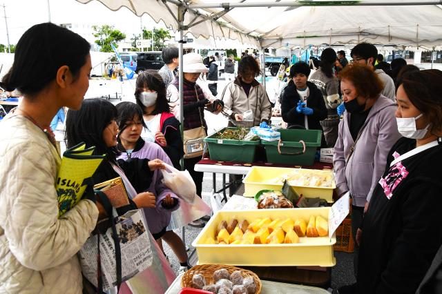 市内の就労支援事業所などで製造、加工された商品を即売する「りゅうぎんプレゼンツ第10回ナイスハートバザールイン宮古島」(主催・県セルプセンター)が7日、マックスバリュ宮古南店駐車場で開かれた。会場には多くの人が訪れ、さまざまな商品を買い求めていた。