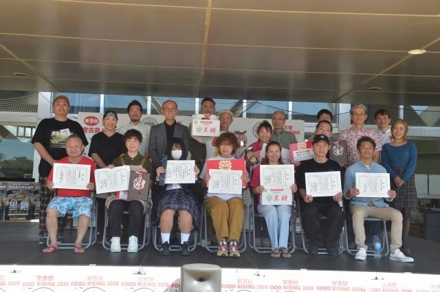宮古島ならではのB級グルメ開発を目指す、宮古島調理師会(柴田政哉会長)主催の「第9回宮古島んまむぬ杯」の表彰式が15日、JTAドーム宮古島で行われた。「黒糖」を使って開発、提供した新メニューについて投票された結果、グランプリ(市長賞)に輝いたランチ部門の「バーニーズクレープ」、ディナー部門の「MadamCSAKABA&COFFEE」など6店舗が表彰された。