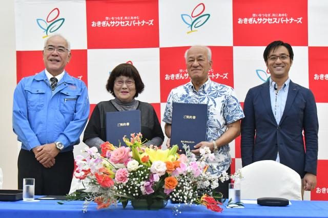 吉田産業(伊良部幸男社長)と北斗リゾート宮古島(上田真一社長)の資本業務提携契約締結式が27日、市内のホテルで行われた。吉田産業の株式をすべて北斗リゾートに譲渡し、事業を承継。吉田産業の名称や事業内容に変更は無い。佐和田克子会長は退任するが、伊良部社長が今後も経営に携わり、従業員の雇用も維持される。県内企業の事業承継やM&A(合併・買収)を支援する「おきぎんサクセスパートナーズ」が仲介役を担った宮古島市では初のケース。