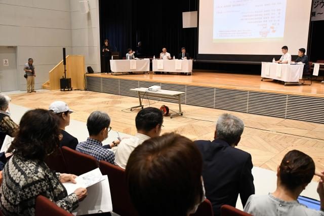 市は2月28日、沖縄県国民保護共同訓練に係る国民保護シンポジウムを市未来創造センターで開催した。日本大学危機管理学部准教授の中林啓修氏による基調講演をはじめ、第2回オープンハウス型住民意見交換(同25~27日)で市民から寄せられた意見を基に、嘉数登市長や国、県の担当者らによる意見交換が行われ、参加した市民らが国民保護について認識を深めた。