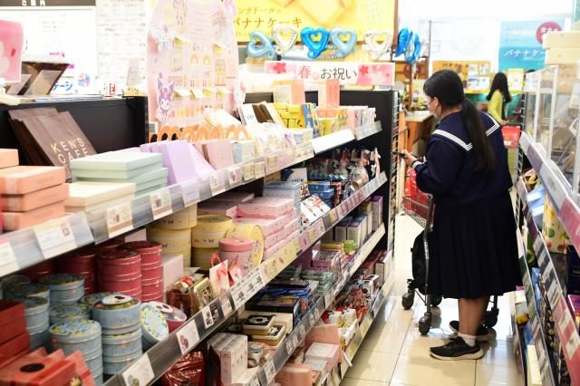 3月14日はホワイトデー。バレンタインデーに女性からチョコレートなどをプレゼントされた男性が、そのお返しとして菓子などを贈る日とされている。市内の大型スーパーには専用コーナーが設けられ、買い物客は品定めをしながらお返しの品を買い求めていた。