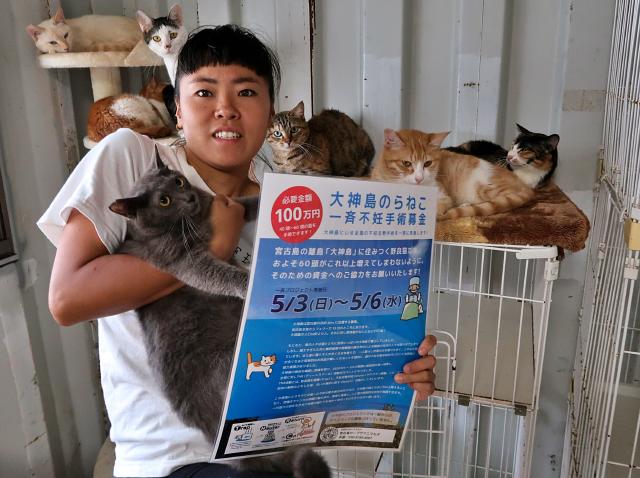 飼い犬、飼い猫の去勢、避妊手術費を4月以降は一律1000円で実施する取り組みを展開する宮古島セーブ・ザ・アニマルズ代表の中原さん=27日、上野宮国