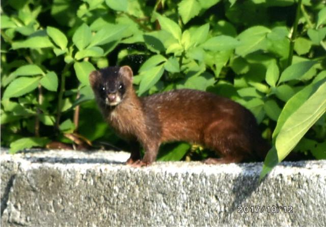 公道の脇に現れたニホンイタチ=伊良部(資料写真)